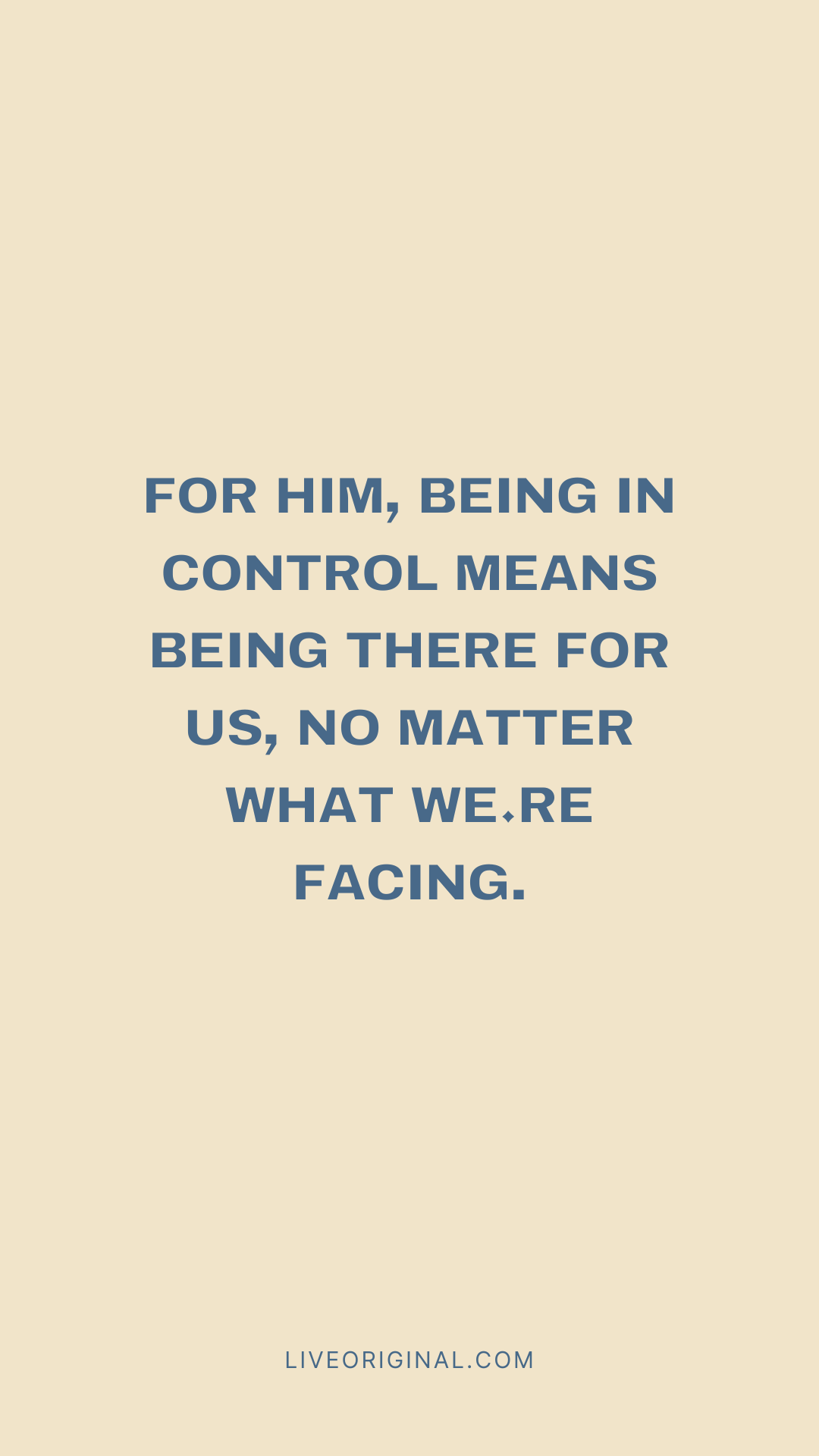 God does it differently. For Him, being in control means being there for us, no matter what we’re facing. His arms are always open wide, always inviting us to turn to Him. To rely on Him. To find that in His love, we will find all that we need.