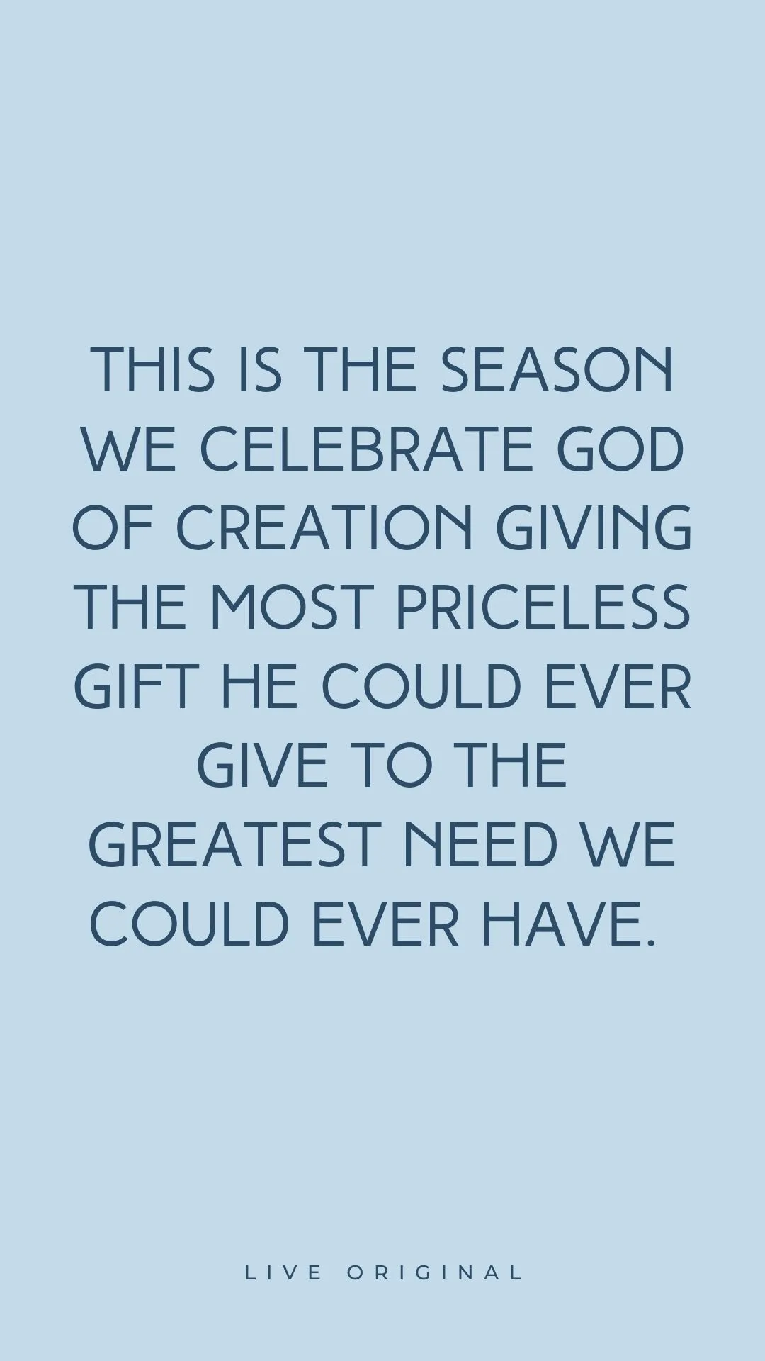 This is the season we celebrate God of creation giving the most priceless gift He could ever give to the greatest need we could ever have. Jesus is the reason we celebrate this season, but the reason He came was because you needed Him to. And He loved you enough to do that.