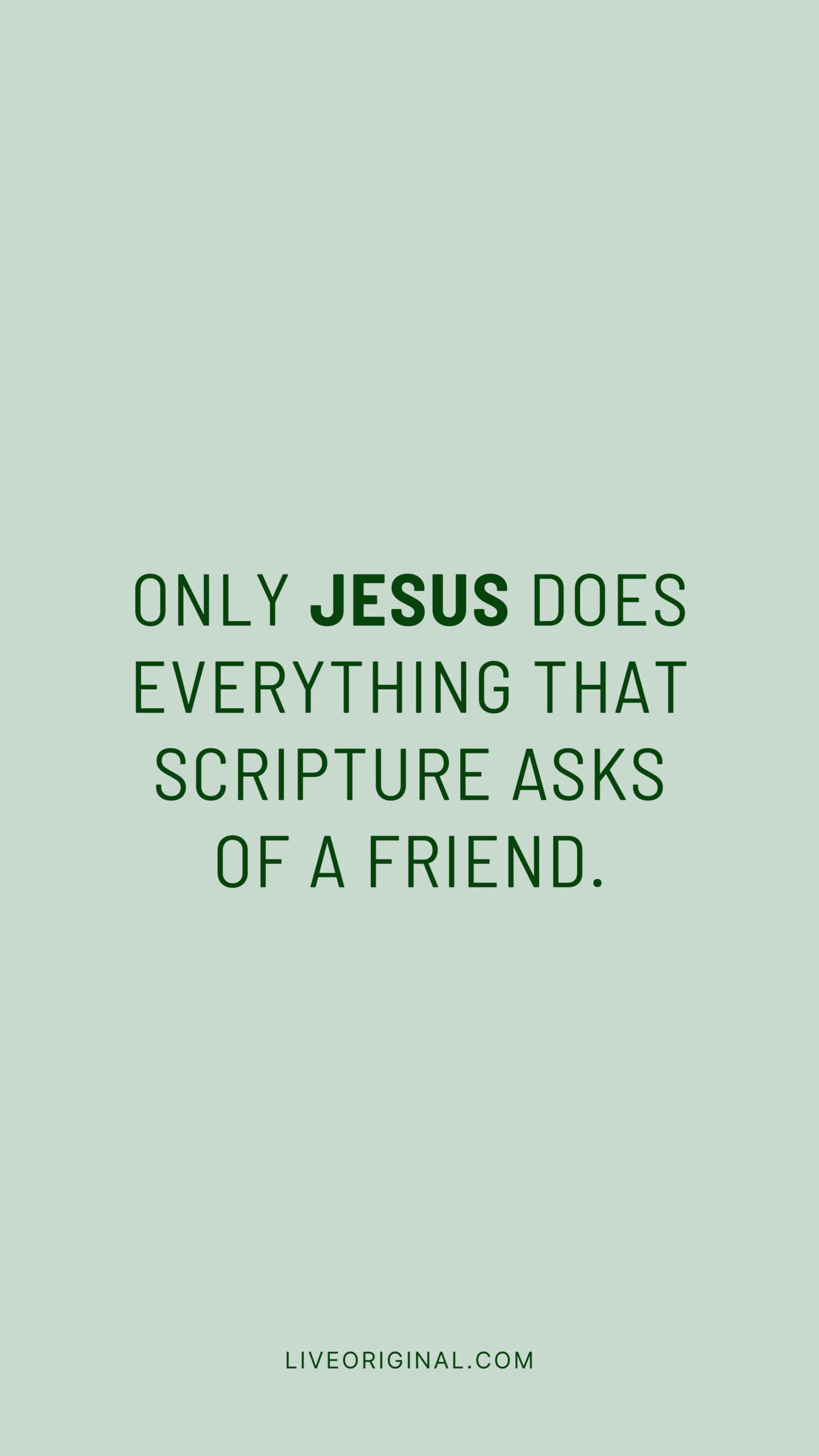 Once you realize your primary needs for security and love are met in Christ, and you start befriending Him yourself, you’re going to see Him as both your model for friendship and your strength to live it out. Only Jesus does everything that Scripture asks of a friend.